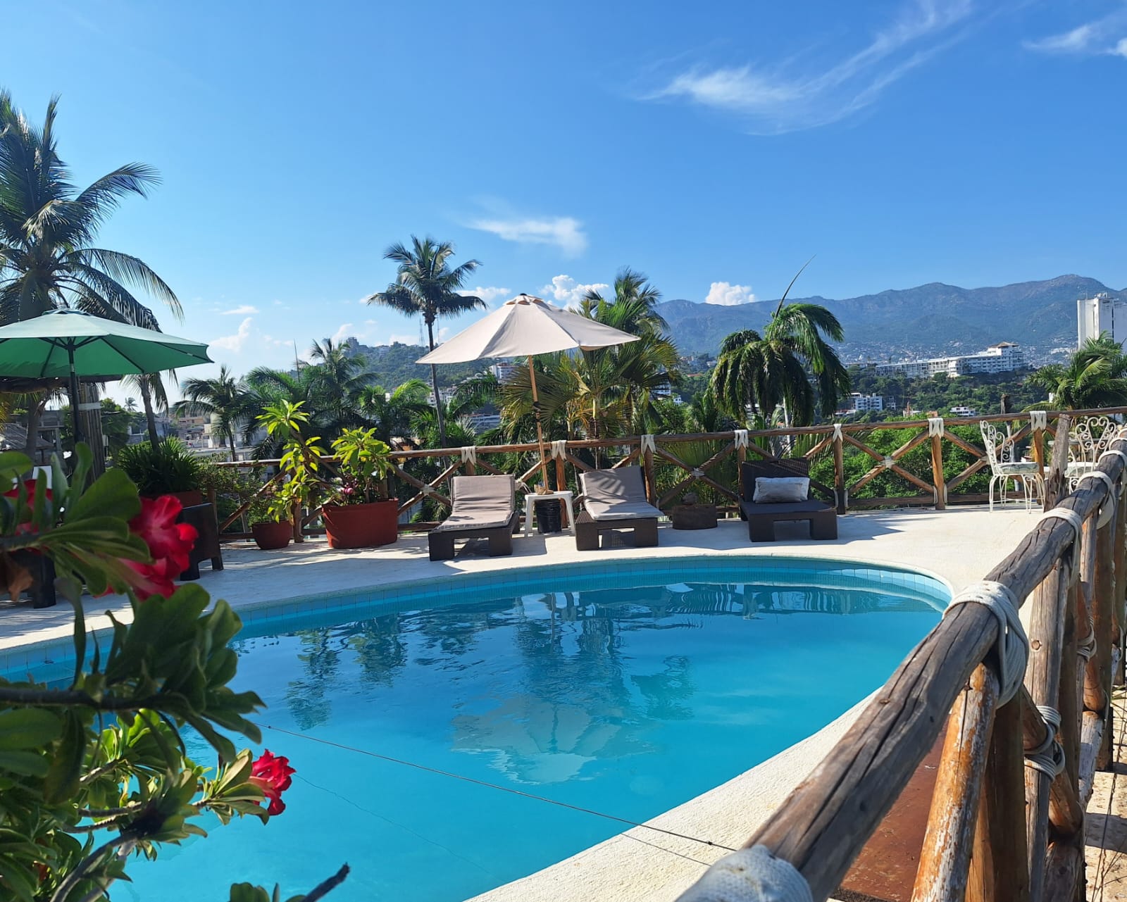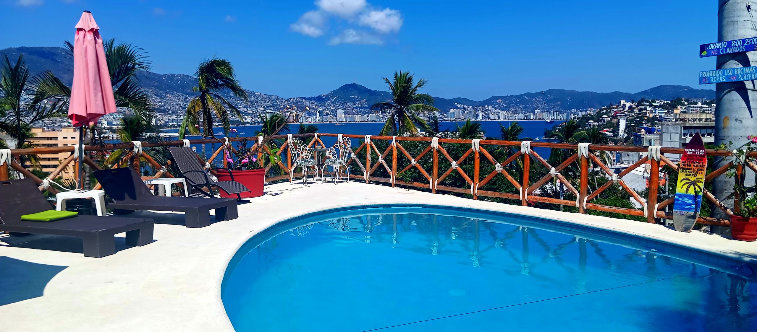 Ver el menúDisfruta de nuestra alberca entre las 9a.m y las 10p.m con vista a la Baia de Acapulco de profundidad entre 0,8 a 1,80 metros